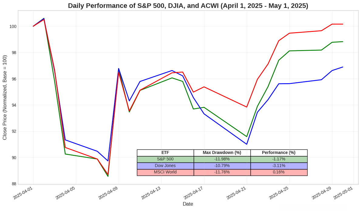 In the first week of April, global equity markets experienced a sharp decline following the announcement of widespread tariffs by the U.S. government. The S&P 500 dropped approximately 12%, and the Dow Jones Industrial Average fell nearly 11%, erasing trillions in market capitalization.